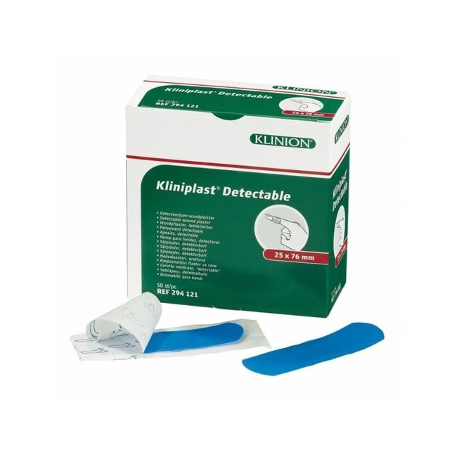 De Kliniplast Detectable is met name geschikt voor toepassing in keukens bij voedselbereiding en in de voedselverwerkende industrie. De blauwe kleur en metalen strip in het wondkussen maakt deze pleister eenvoudig detecteerbaar.